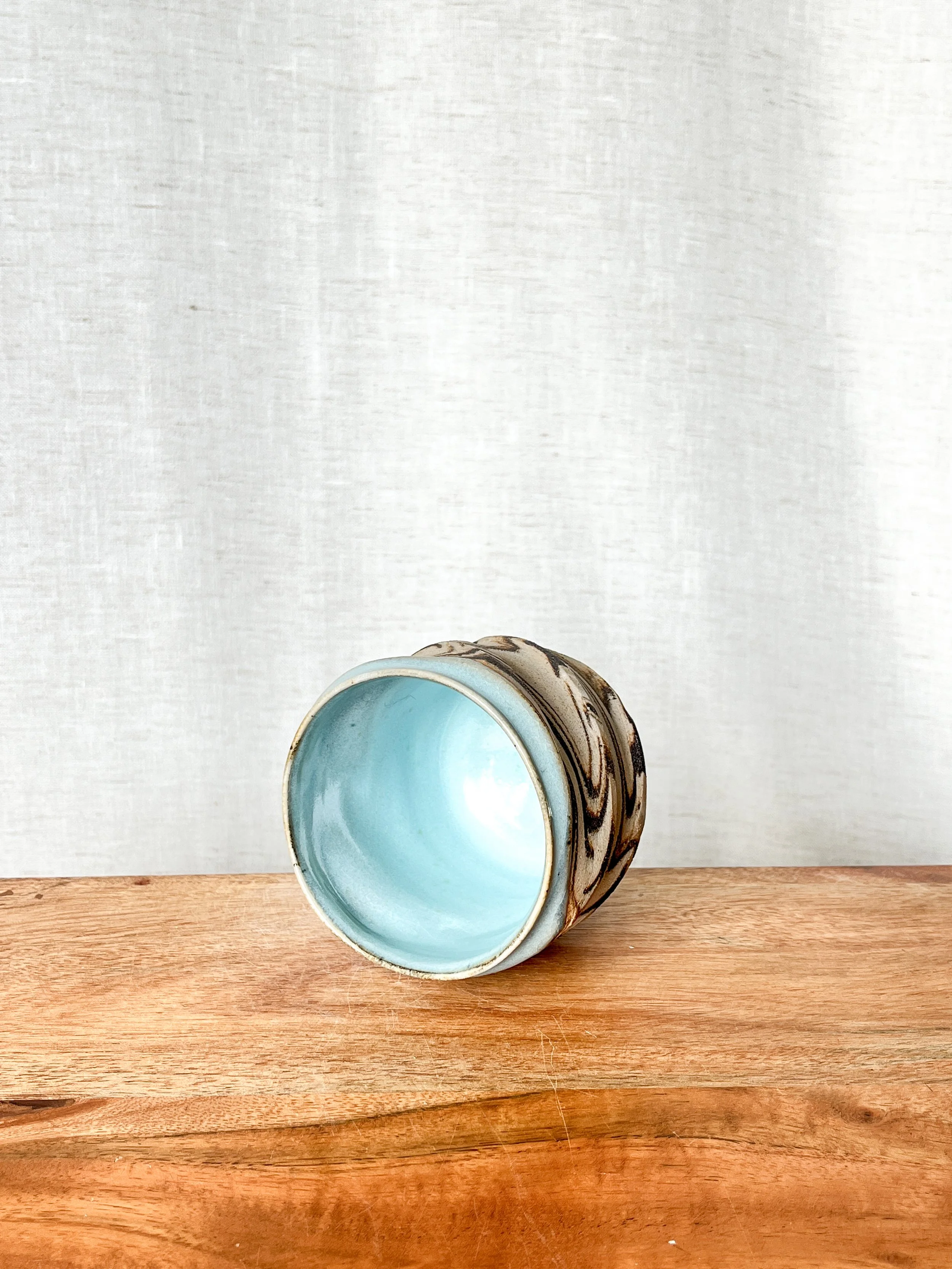 marbled cup. stoneware.